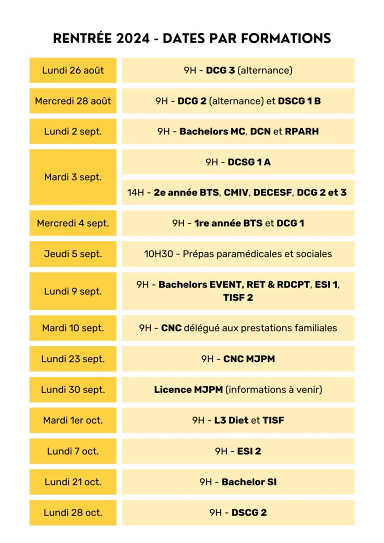L’Institut Limayrac a le plaisir de vous communiquer les dates de la rentrée 2024/2025 par formation.